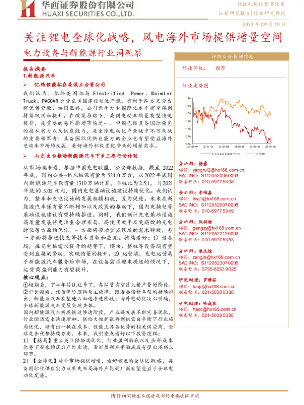 【华西证券】【20230910】20230910-华西证券-电力设备与新能源行业周观察:关注锂电全球化战略,风电海外市场提供增量空间-27页 行业研究