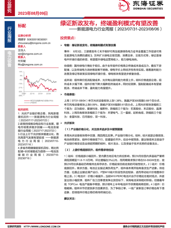 【东海证券】【20230809】绿证新政发布,终端盈利模式有望改善-21页 行业研究