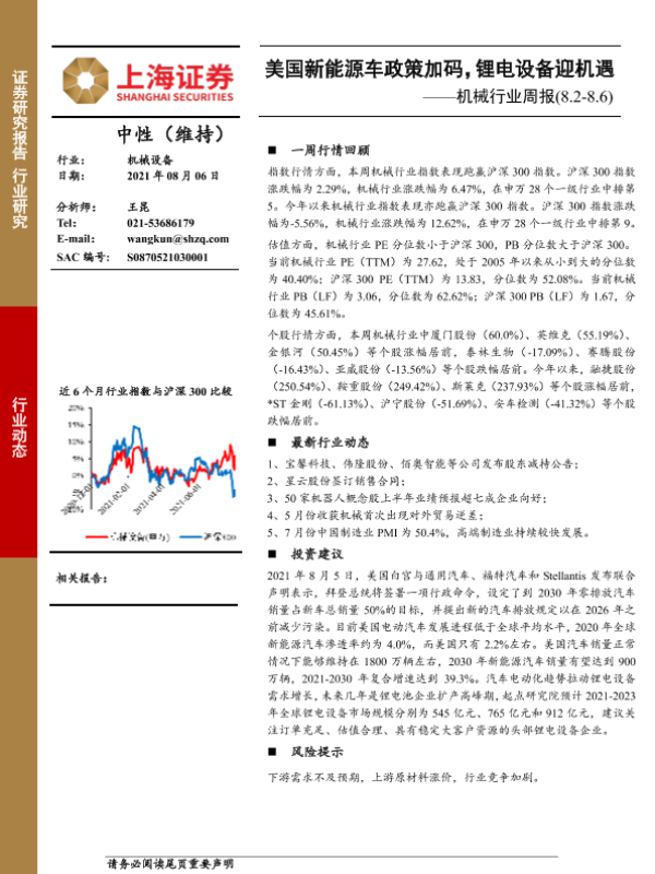 【上海证券】【20210806】20210806-上海证券-机械行业周报:美国新能源车政策加码,锂电设备迎机遇-8页 行业研究
