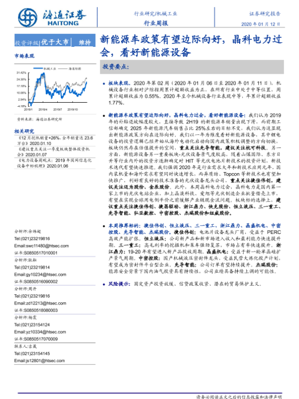 【海通证券】【20200112】20200112-海通证券-机械工业行业周报:新能源车政策有望边际向好,晶科电力过会,看好新能源设备-11页 行业研究