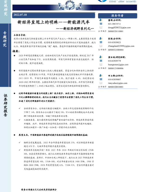 【国泰君安证券】【20220718】新经济视野系列之一:新经济皇冠上的明珠,新能源汽车-24页 行业研究