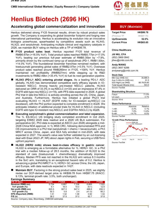 【CMB International Global Markets】【202603】Henlius Biotech(2696 HK)-Accelerating global commercialization and innovation-5页 证券期货研究报告