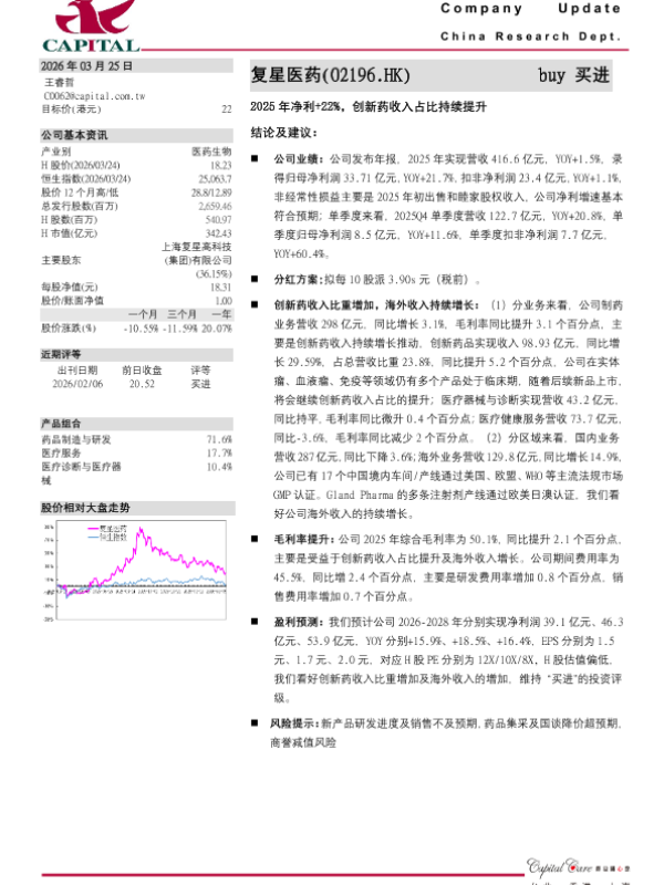 【群益证券】【202603】复星医药(02196.HK) buy买进-3页 证券期货研究报告