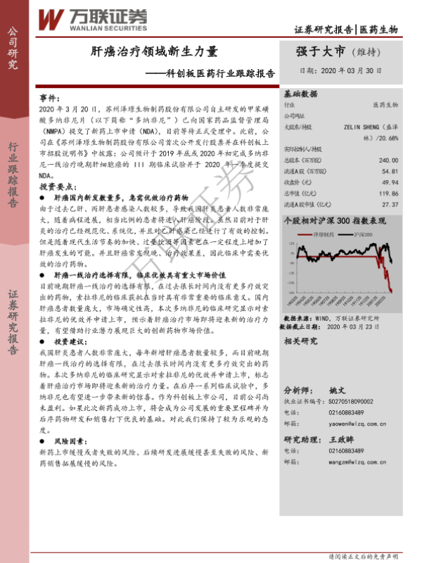 【万联证券】【20200330】科创板医药行业跟踪报告:肝癌治疗领域新生力量-7页 行业研究