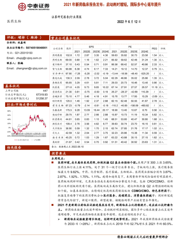 【东莞证券】【20220612】医药生物行业周报:我国新药临床试验数量及其占比逐年增加-10页 行业研究