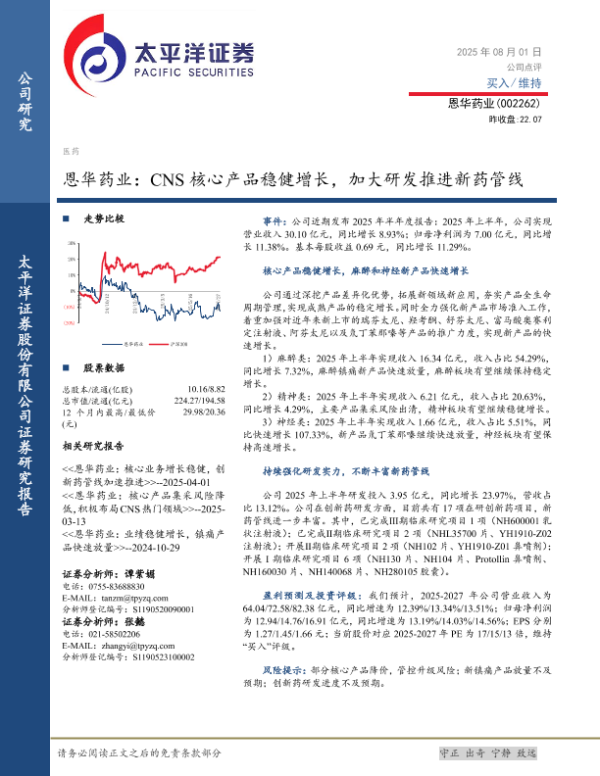 【太平洋证券】【20250801】恩华药业_CNS核心产品稳健增长_加大研发推进新药管线-5页 公司研究