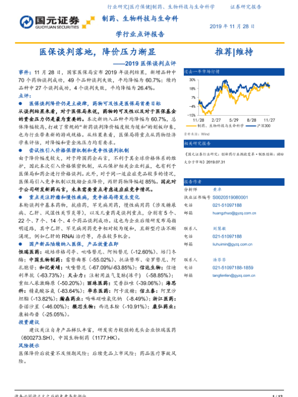 【国元证券】【20191128】2019医保谈判点评:医保谈判落地,降价压力渐显-12页 行业研究