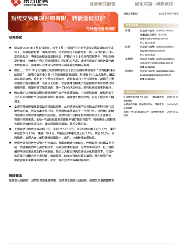 【东方证券】【202603】短线交易新规影响有限,转债逢低可配-10页 证券期货研究报告