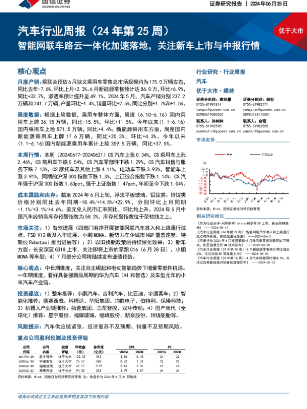 【国信证券】【20240625】20240625-国信证券-汽车行业周报(24年第25周):智能网联车路云一体化加速落地,关注新车上市与中报行情-33页 行业研究