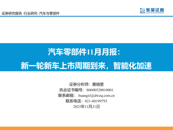 【东吴证券】【20231121】汽车零部件11月月报:新一轮新车上市周期到来,智能化加速-39页 行业研究