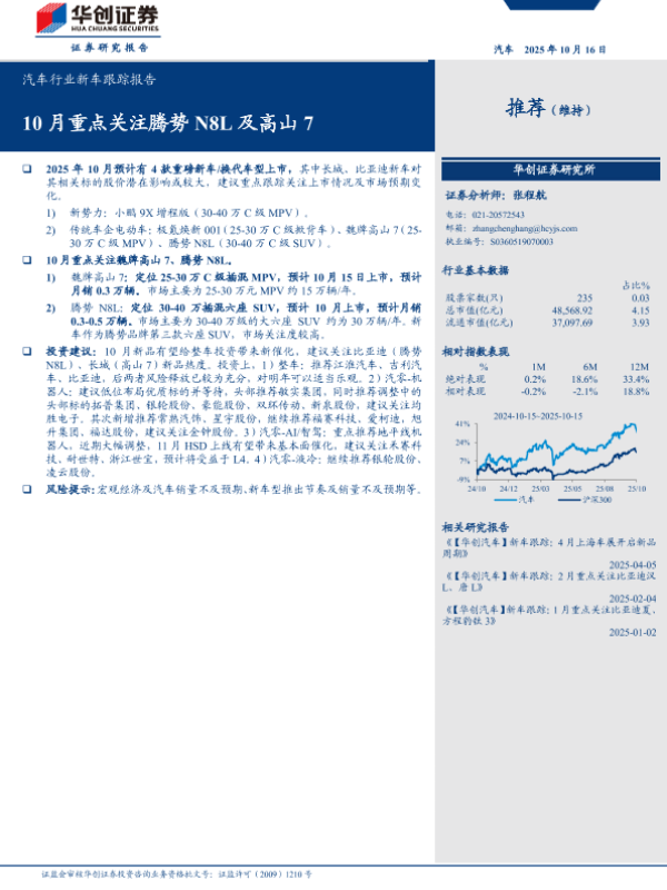 【华创证券】【202510】汽车行业新车跟踪报告:10月重点关注腾势N8L及高山7-10页 证券期货研究报告