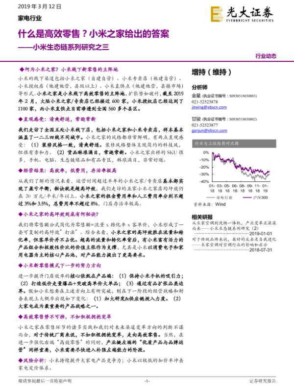 【光大证券】【20190312】2019.03.12-家电行业小米生态链系列研究之三:什么是高效零售?小米之家给出的答案-19页 行业研究