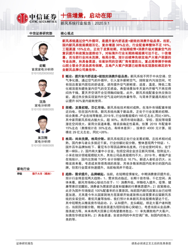 【中信证券】【20200901】新风系统行业报告:十倍增量,启动在即-20页 行业研究