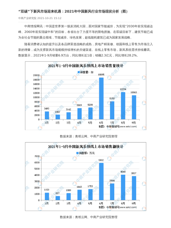 【中商产业研究院】【2021】“双碳”下新风市场迎来机遇:2021年中国新风行业市场现状分析-2页 行业研究