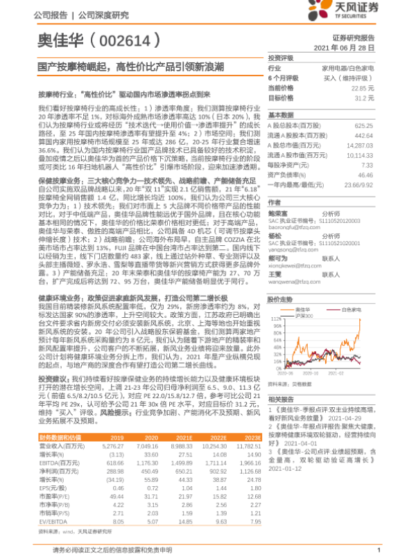【天风证券】【20210628】国产按摩椅崛起,高性价比产品引领新浪潮-24页 行业研究
