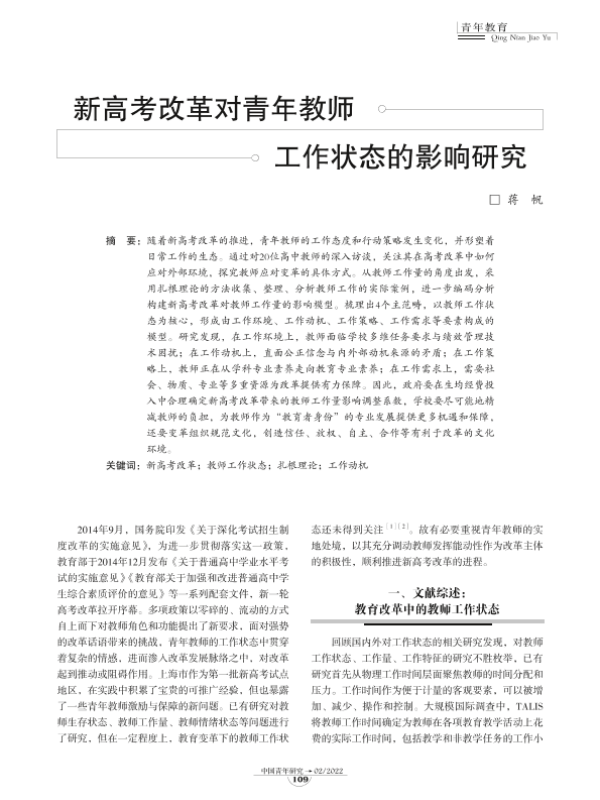 【蒋帆】【20220201】新高考改革对青年教师工作状态的影响研究-11页 行业研究
