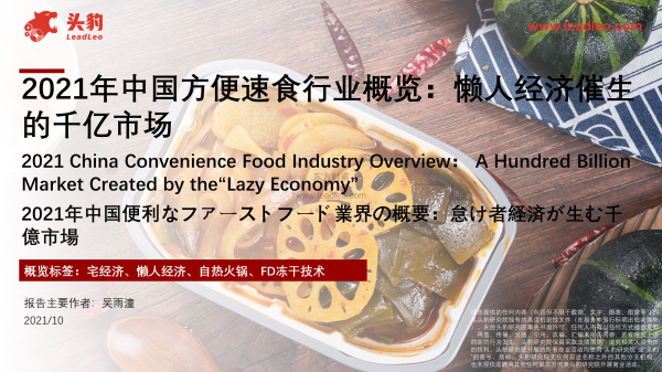 【头豹研究院】【2021】2021年中国方便速食行业概览:懒人经济催生的千亿市场-44页 行业研究