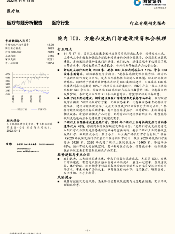 【国金证券】【20221118】医疗专题分析报告:院内ICU、方舱和发热门诊建设投资机会梳理-10页 行业研究