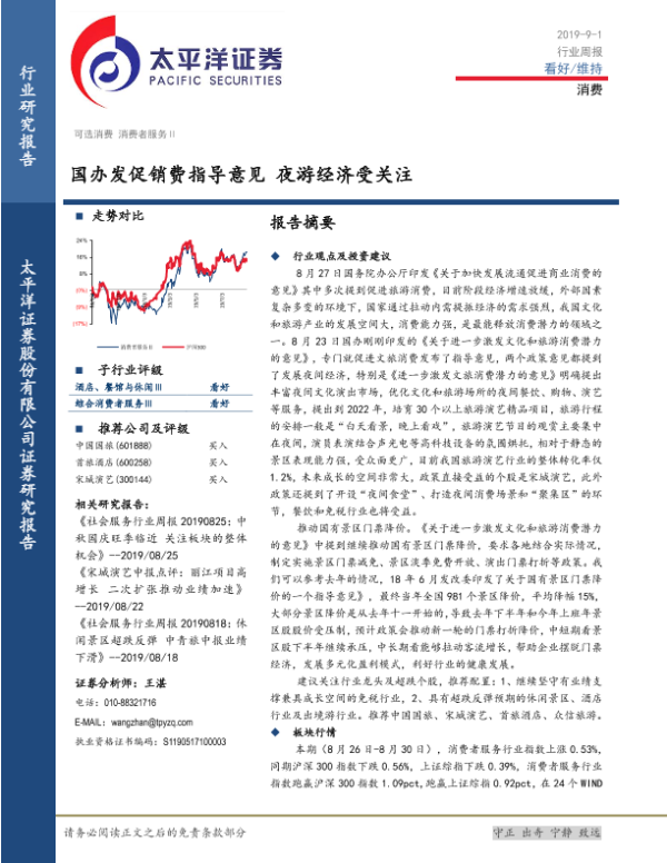 【太平洋证券】【20190901】消费行业周报:国办发促销费指导意见 夜游经济受关注-16页 行业研究