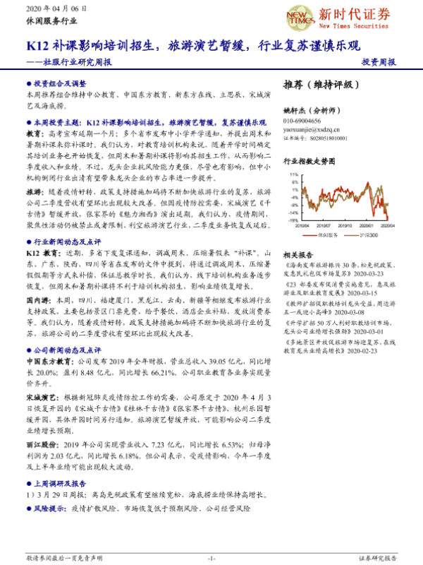 【新时代证券】【20200406】社服行业研究周报:K12补课影响培训招生,旅游演艺暂缓,行业复苏谨慎乐观-18页 行业研究