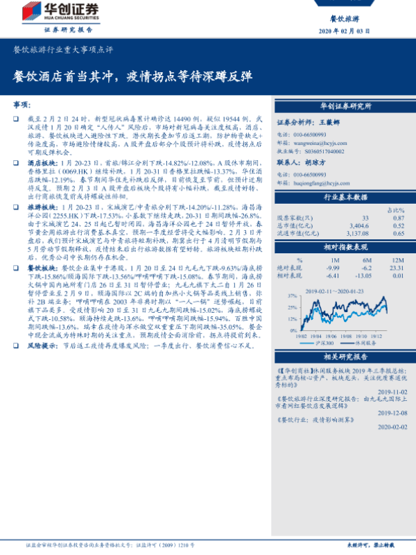 【华创证券】【20200203】餐饮旅游行业重大事项点评:餐饮酒店首当其冲,疫情拐点等待深蹲反弹-9页 行业研究