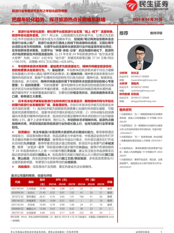 【民生证券】【20240430】旅游行业专题研究系列之年轻化趋势观察:把握年轻化趋势,探寻旅游热点长期维系脉络-26页 行业研究