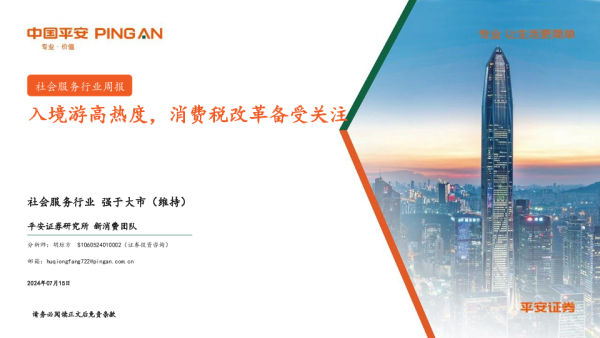 【平安证券】【20240715】社会服务行业周报:入境游高热度,消费税改革备受关注-12页 行业研究