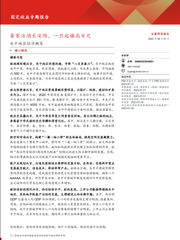 【西部证券】【20230801】关中地区经济概览:豪家沽酒长安陌,一旦起楼高百尺-23页 行业研究