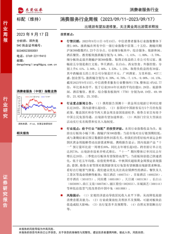 【东莞证券】【20230917】消费服务行业周报:出境游有望加速修复,关注黄金周出游需求释放-10页 行业研究