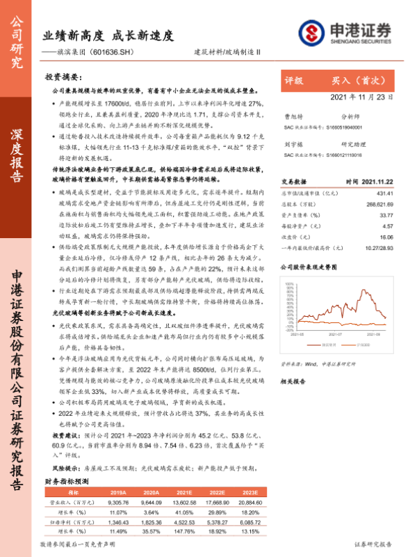 【申港证券】【20211123】业绩新高度 成长新速度——旗滨集团(601636.SH)-34页 行业研究