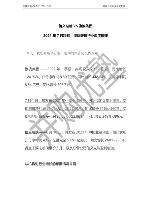 【并购优塾】【20210730】2021年7月跟踪,浮法玻璃行业深度梳理:信义玻璃VS旗滨集团-20页 行业研究