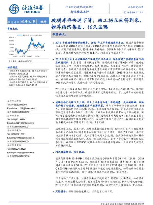 【海通证券】【20190912】建筑材料行业信息点评:玻璃库存快速下降,竣工拐点或将到来-11页 行业研究