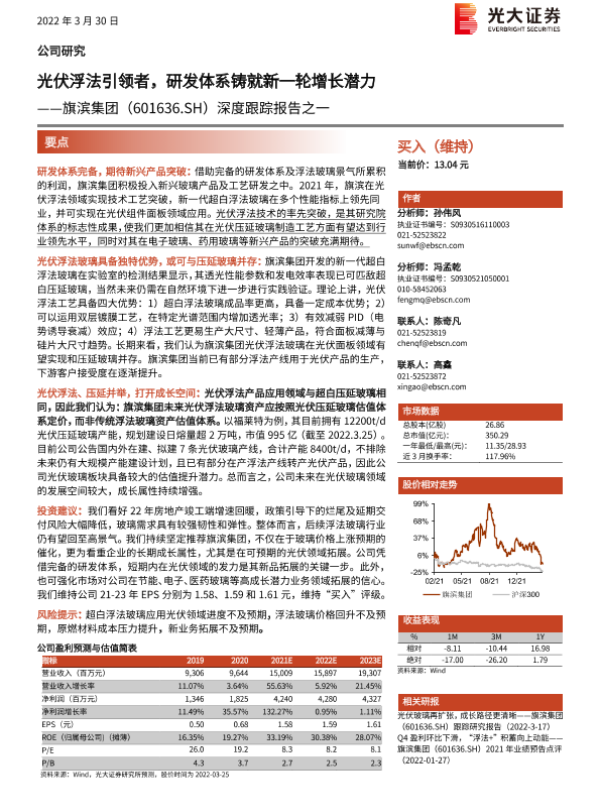 【光大证券】【20220330】旗滨集团(601636.SH)深度跟踪报告之一:光伏浮法引领者,研发体系铸就新一轮增长潜力-29页 行业研究