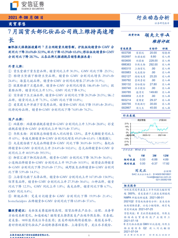 【安信证券】【20210808】7月国货头部化妆品公司线上维持高速增长-14页 行业研究