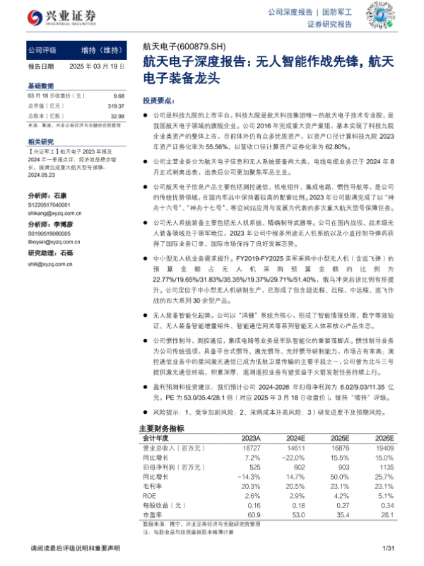【兴业证券】【20250319】航天电子深度报告:无人智能作战先锋,航天电子装备龙头-31页 行业研究