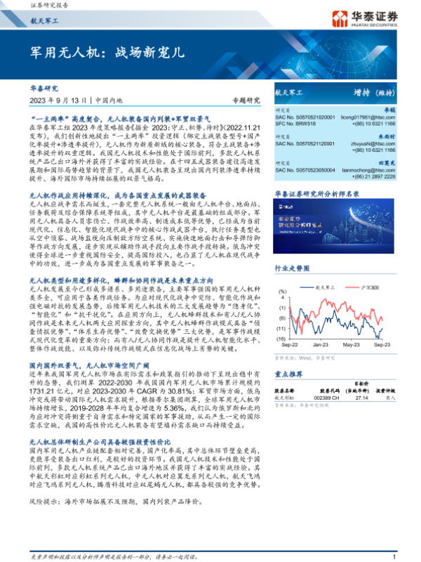 【华泰证券】【20230913】军用无人机:战场新宠儿-41页 行业研究