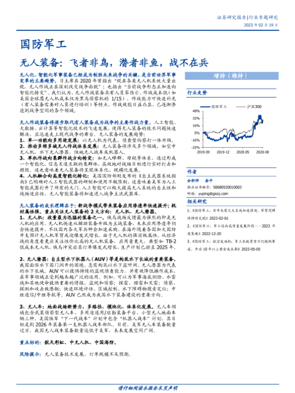 【国盛证券】【20230219】国防军工行业:无人装备,飞者非鸟,潜者非鱼,战不在兵-16页 行业研究