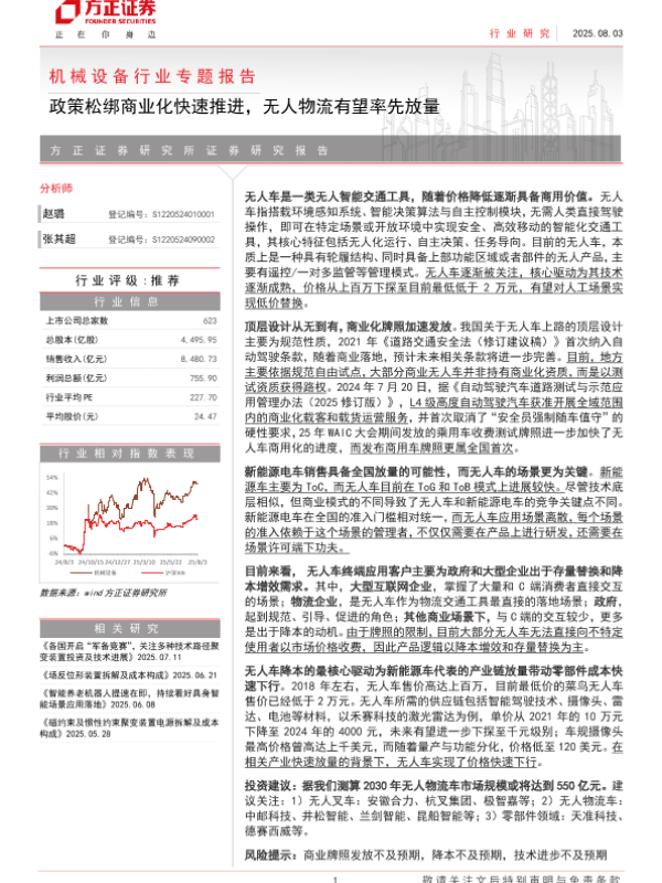 【方正证券】【202508】机械设备行业专题报告:政策松绑商业化快速推进,无人物流有望率先放量-31页 行业研究