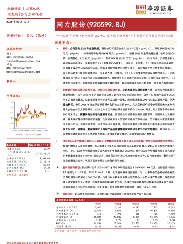 【华源证券】【202603】2025年归母净利润预计yoy+8%,露天煤矿稳增长+有色金属矿高增长带动营利双增-3页 证券期货研究报告