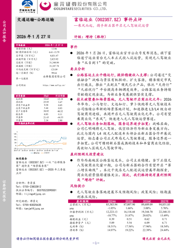 【金元证券】【202601】乘风而起,携手新石器开启无人驾驶试运营-5页 证券期货研究报告