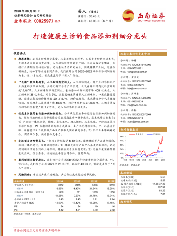 【西南证券】【20200830】20200830-西南证券-金禾实业-002597.SZ-打造健康生活的食品添加剂细分龙头-28页 行业研究