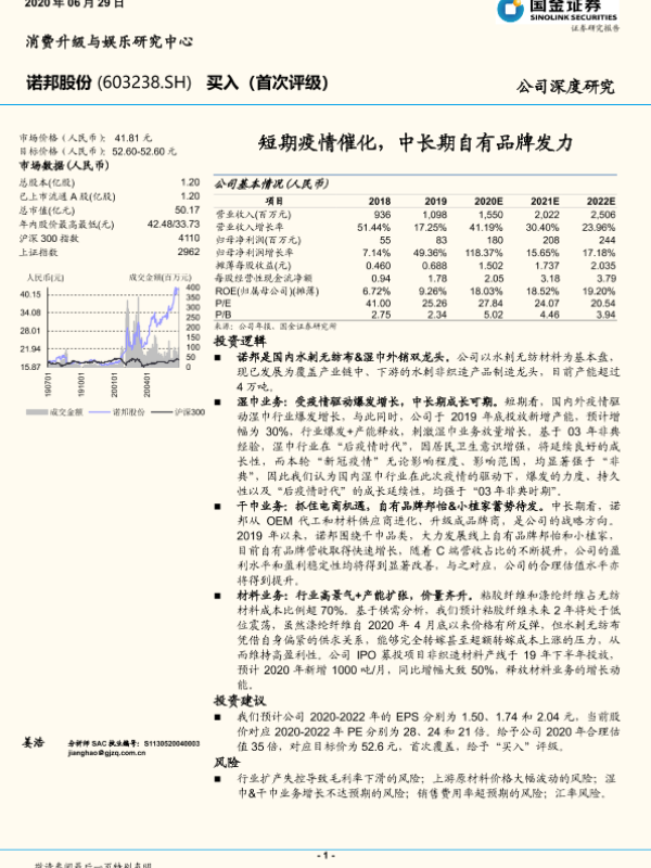 【国金证券】【20200629】诺邦股份-短期疫情催化,中长期自有品牌发力-21页 行业研究