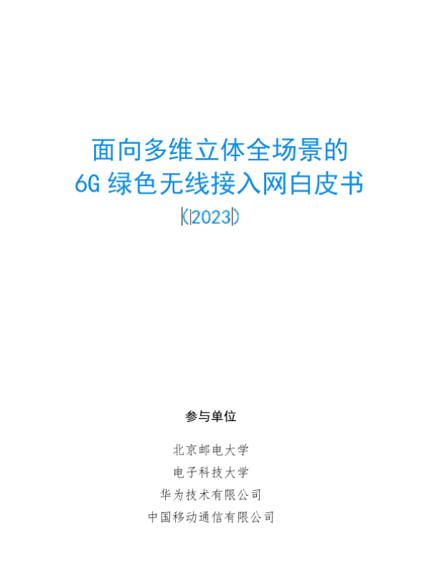 【华为技术有限公司】【20231009】面向多维立体全场景的6G绿色无线接入网白皮书-54页 白皮书