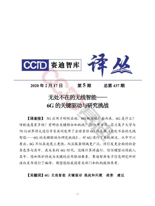 【CCID赛迪智库】【20200217】无处不在的无线智能——6G的关键驱动与研究挑战-28页 白皮书