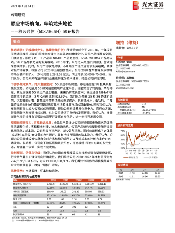 【光大证券】【20210414】20210414-光大证券-移远通信-603236.SH-跟踪报告:顺应市场航向,牢筑龙头地位-23页 行业研究