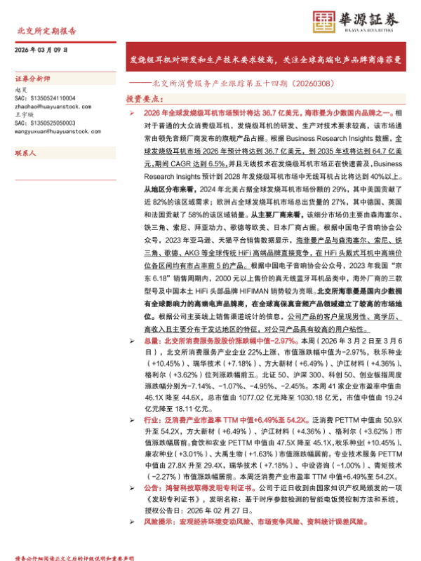 【华源证券】【202603】北交所消费服务产业跟踪第五十四期(20260308)-15页 证券期货研究报告