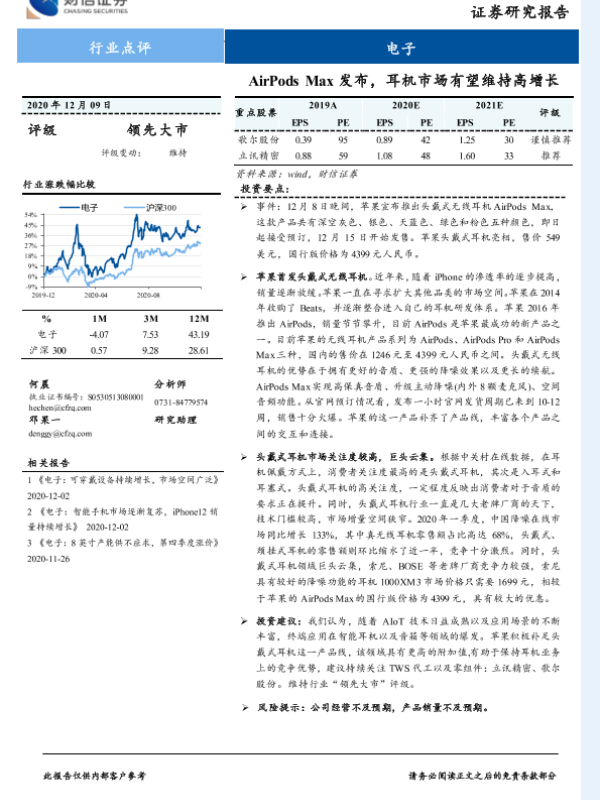 【财信证券】【20201209】电子行业点评:AirPods Max发布,耳机市场有望维持高增长-2页 行业研究