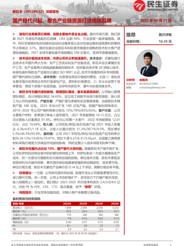 【民生证券】【20230611】20230611-民生证券-新巨丰-301296.SZ-深度报告:国产替代兴起,整合产业链资源打造民族品牌-34页 行业研究
