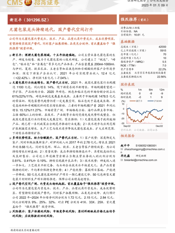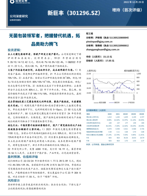 【国金证券】【20221229】新巨丰-301296.SZ-无菌包装领军者,把握替代机遇,拓品类助力腾飞-26页 行业研究
