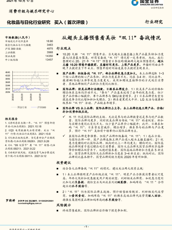 【国金证券】【20211017】化妆品与日化行业研究:从超头主播预售看美妆“双11”备战情况-9页 行业研究